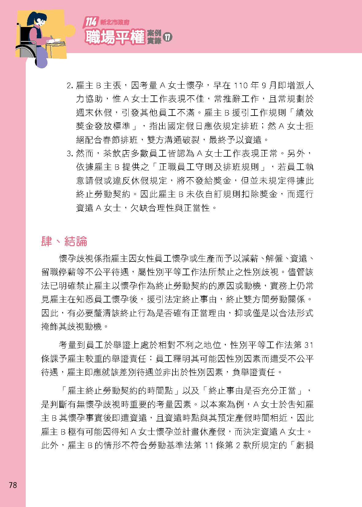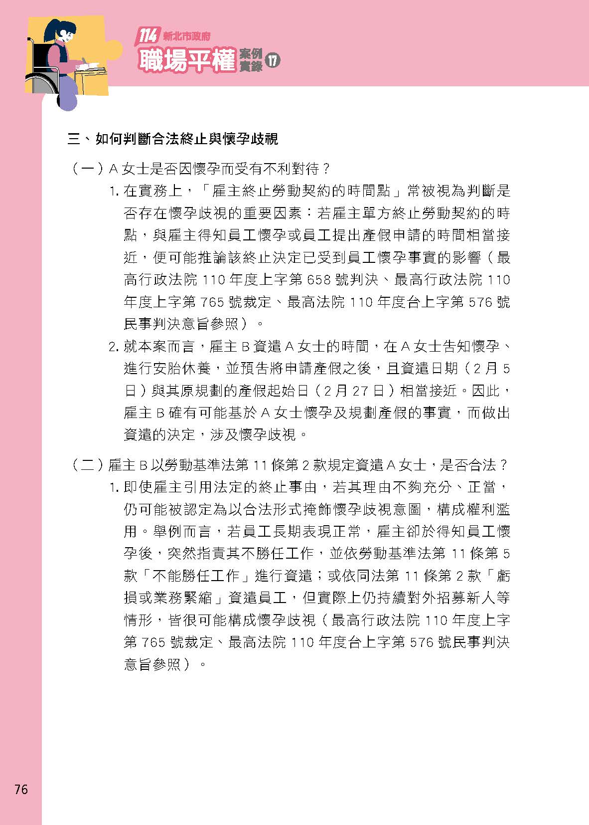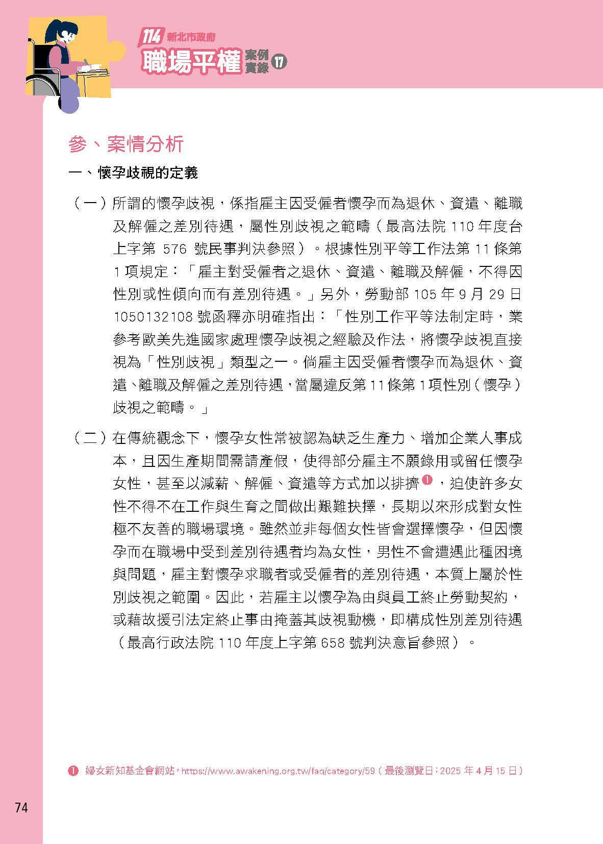 詳細內容請見:新北市政府勞工局114職場平權案例實錄17